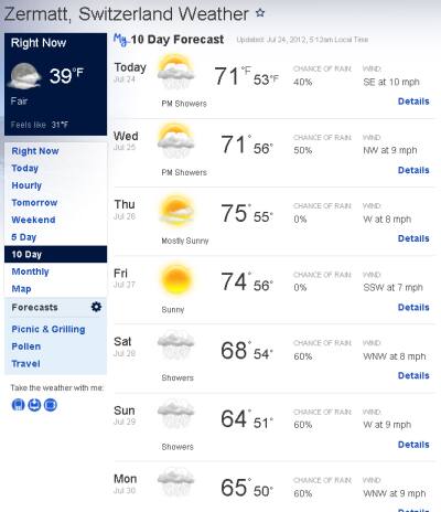 グリンデルワルトの街からの山々の景色は街を散策するだけでも楽しむことができますが、ツェルマットの街からは山々の眺望はそれほど楽しむことが出来ません。