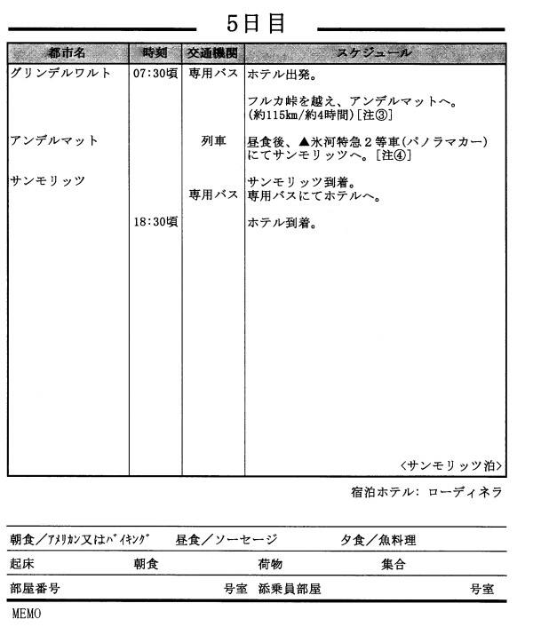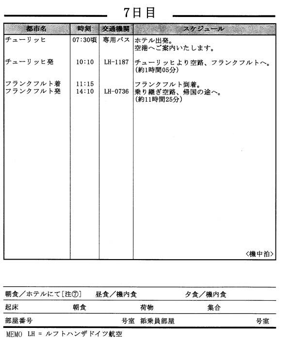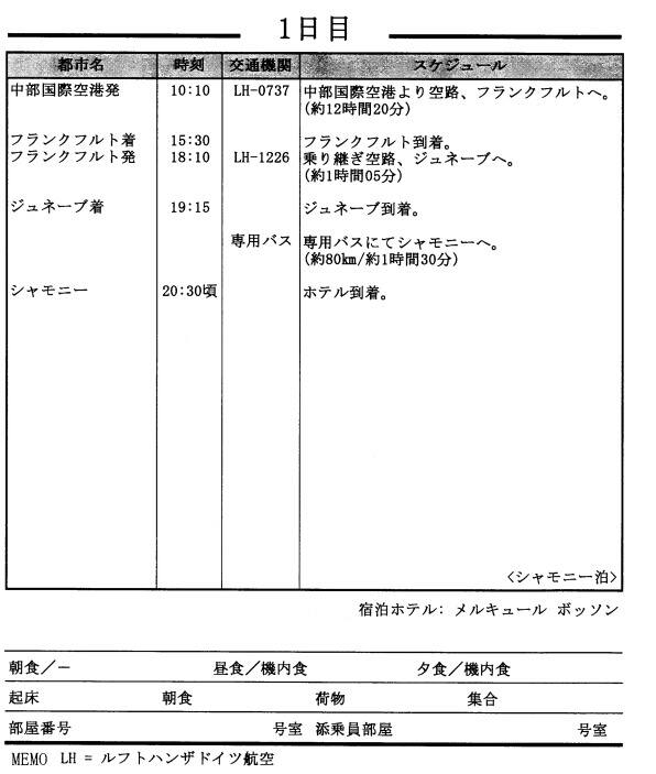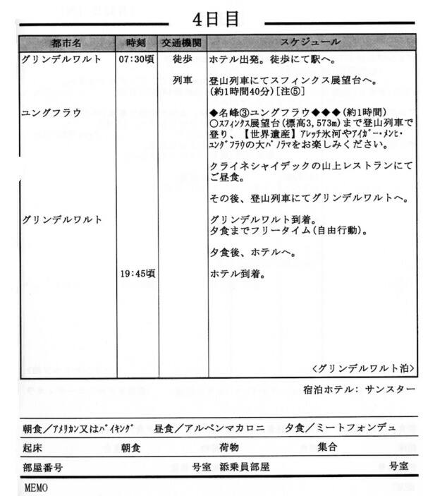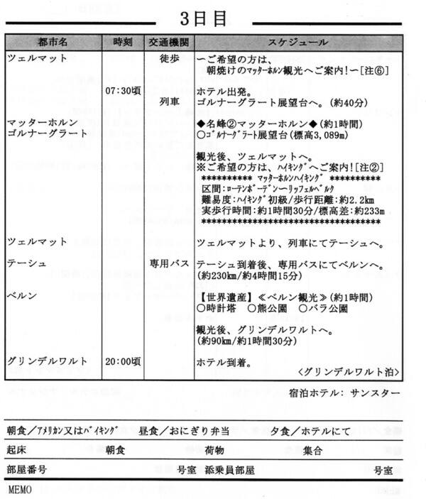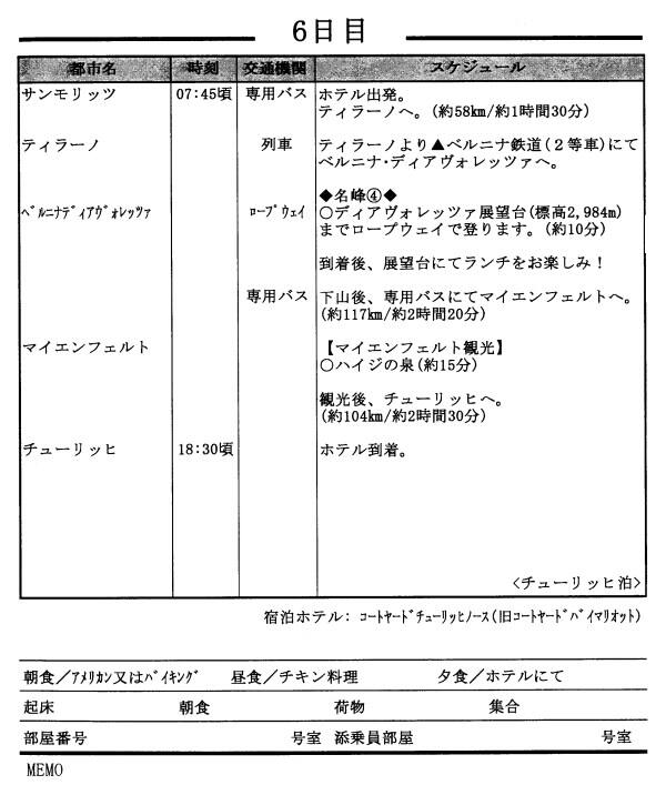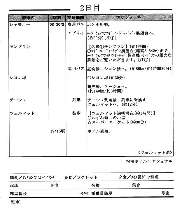 今回申し込んだスイス旅行の最終の旅行日程表が送られて来たのは旅行出発日の10日前でした。