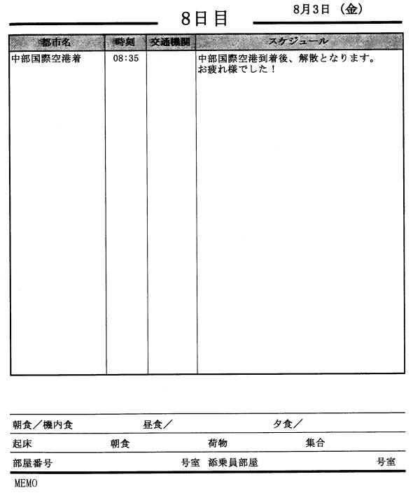ホテルチェックインの際に翌日の集合時間、荷物はどうするか、朝食の場所、困ったときに相談できる添乗員の部屋番号などが記載できるようになっています。