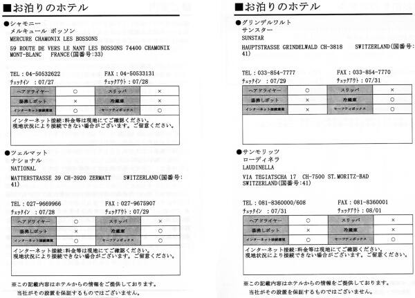 便利だと思ったのは宿泊するホテルのヘアードライヤー、スリッパ、湯沸しポット、冷蔵庫、インターネット接続環境、セーフティーボックスの有無が書かれていることです。