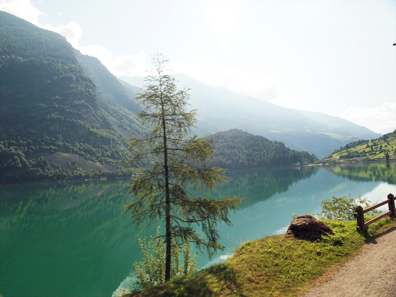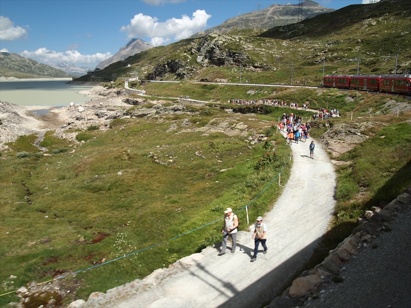 ベルニナ線の列車は風光明媚な湖のほとりを通過したりして、次第に高度を上げていきます。