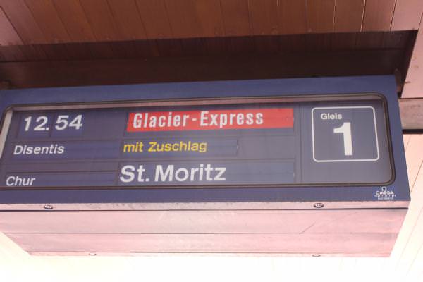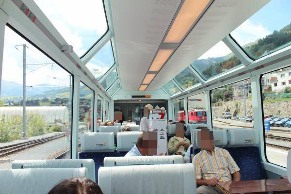 アンデルマットで昼食後に駅からサンモリッツまで氷河特急のパノラマカーの2等車に乗車しました。