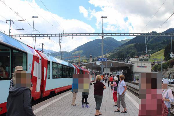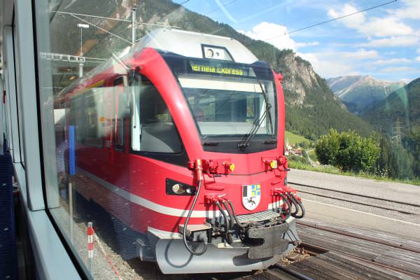 サンモリッツ駅に到着は夕方なので、かなりの時間を車内で過ごすことになり、乗車した最初は景色を見て楽しむのですが、そのうちに景色を見るのも飽きてしまい、知らないうちに寝てしまいました。