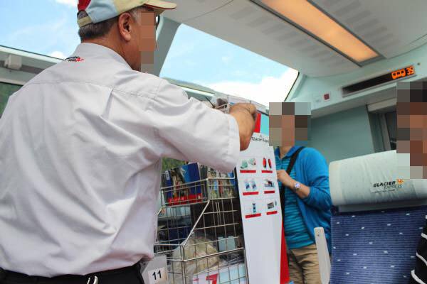 氷河特急では乗車中にお土産の販売ワゴンも来ましたが、私たちが欲しかったものは無いと言われてしまいました。