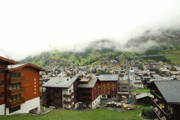 早朝の朝食前に朝焼けのマッターホルンを見るということで、ホテル近くのビューポイントまで歩いて行くという観光もあったのですが、当日のツェルマットの空はは曇りで景色をまったく見ることができませんでした。