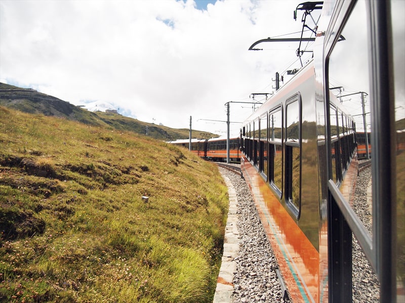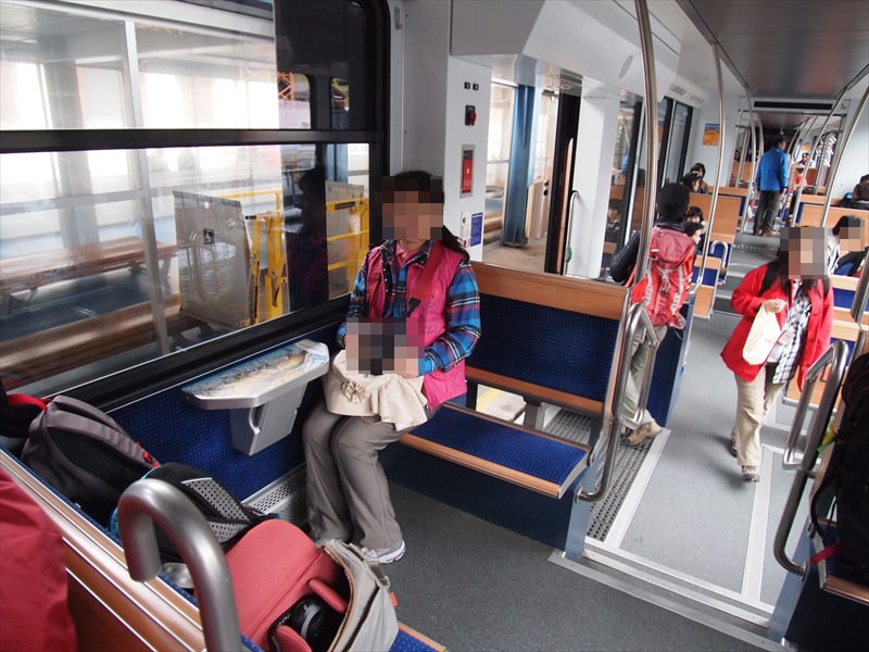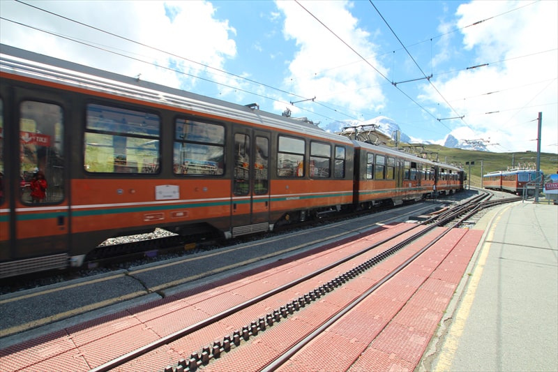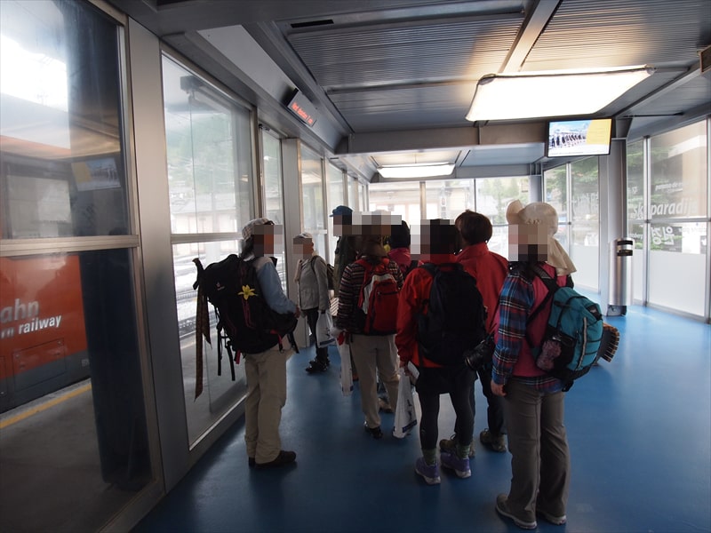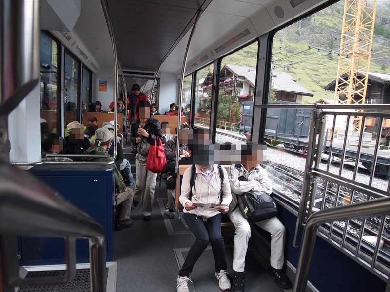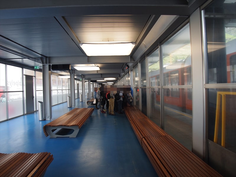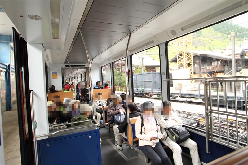 ゴルナーグラート鉄道は指定席ではなく、席は早い者勝ちとなりますのでできるだけ乗車の列が少ない車両の出入り口前に並びましょう。