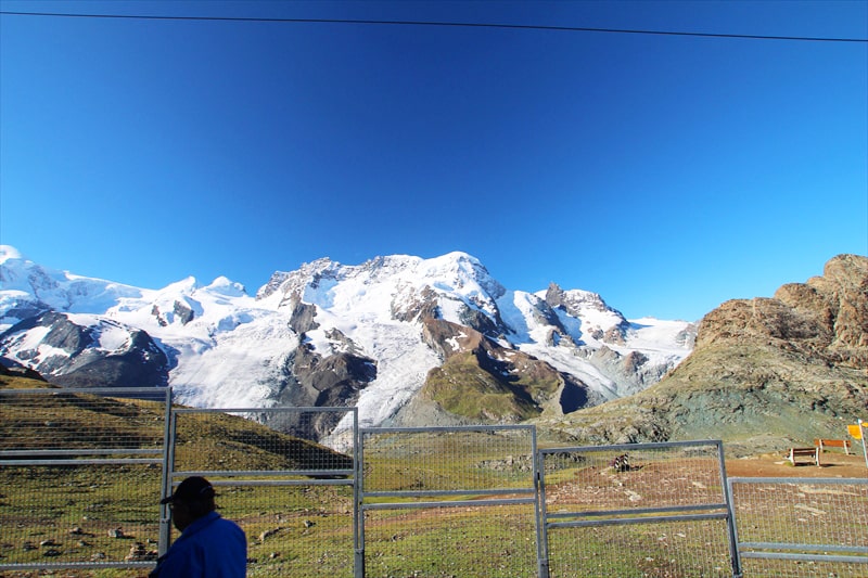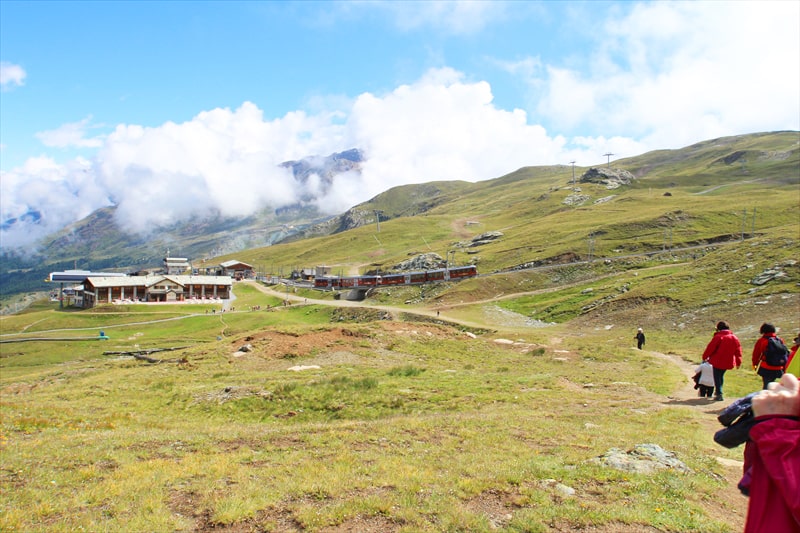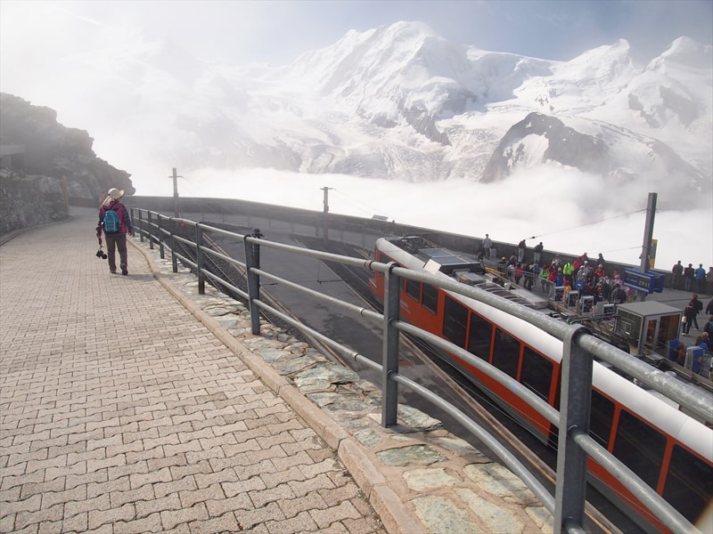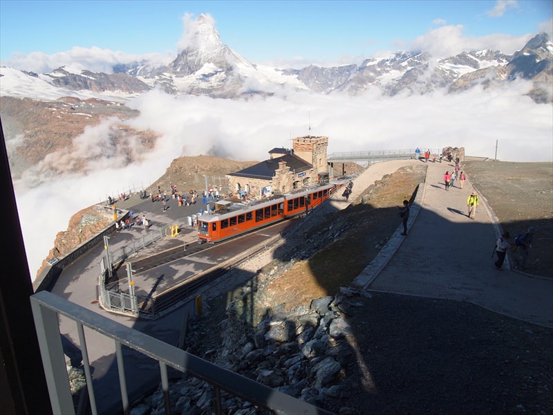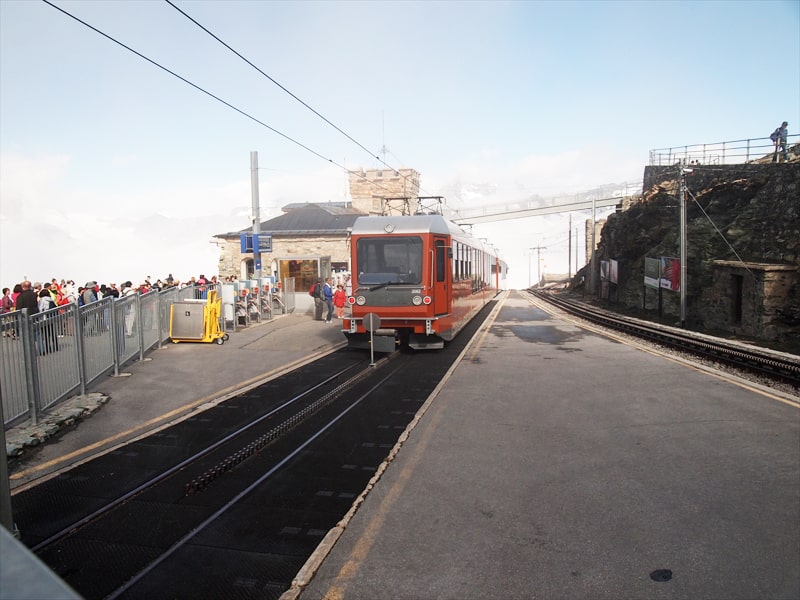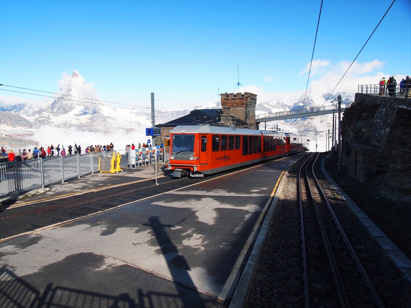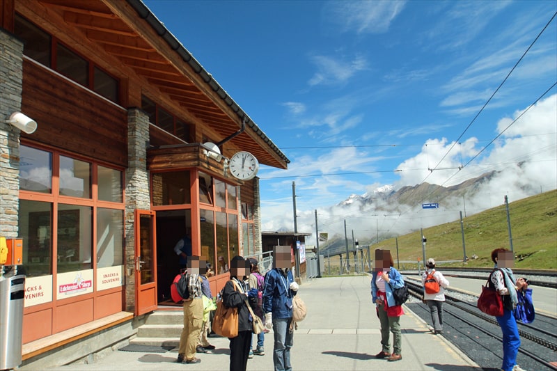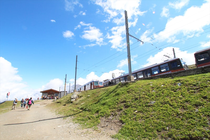 当日はツェルマットからマッターホルンは見えませんが、ゴルナーグラート駅は一部雲があるものの良い天気となっていました。