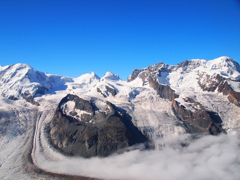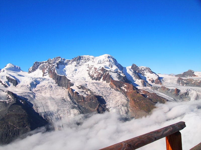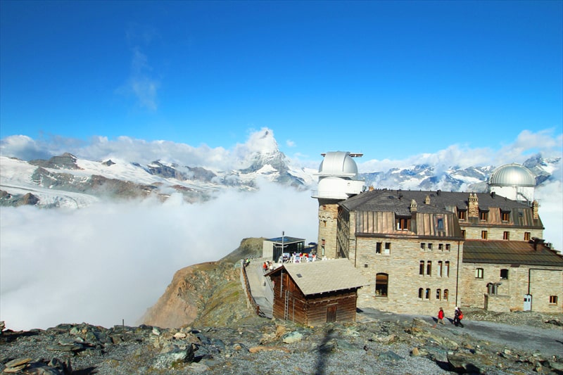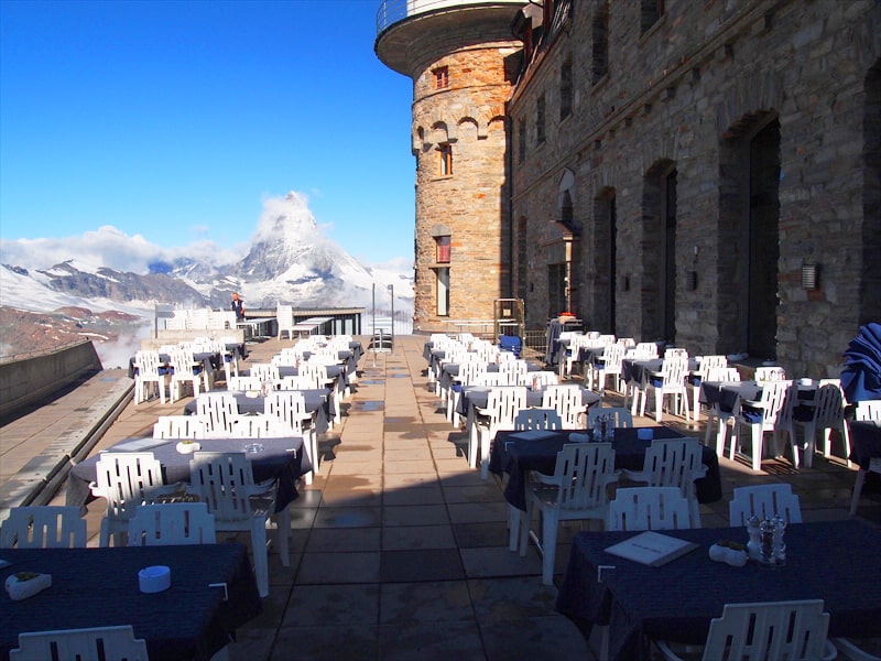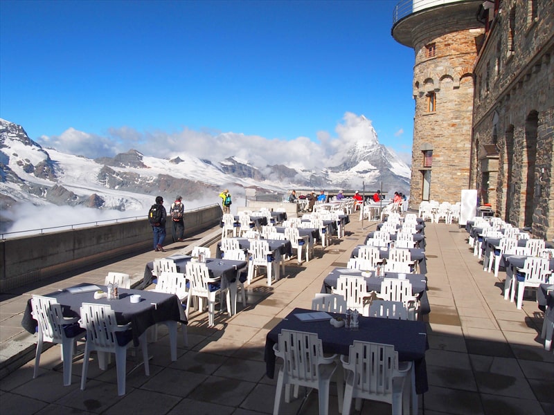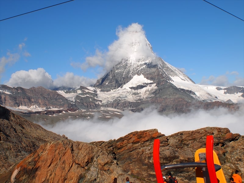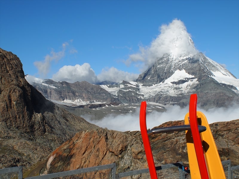 ただしマッターホルンにはしばらくすると雲がかかりだし、姿を望めたのは朝早い時間だけでしたから、ゴルナーグラート展望台観光は午前中の早い時間のツアーがお勧めということになります。