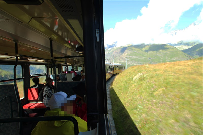 ビュッフェ&バー リッフェルベルグで景色を楽しみながらの昼食後は再び列車に乗り、ツェルマットまで戻ります。