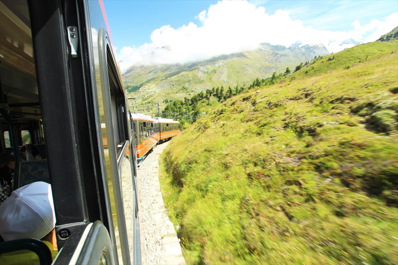 ゴルナーグラート鉄道はツェルマットの町から徐々に登っていきます。