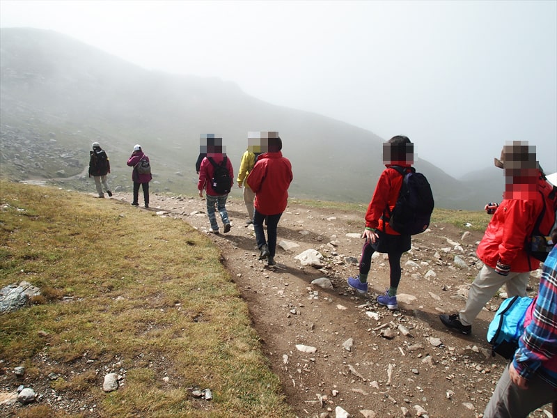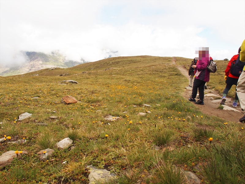 天気はあいにくの雲の中となりましたので、ガイドの方が説明してくれる高山植物を見ながらの観光となりました。