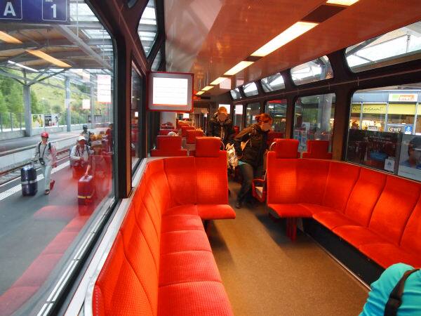 ツエルマットは自動車は乗り入れ禁止なのでバスで行くことが出来ませんので、テーシュの駅から一区間だけ電車にのります。
