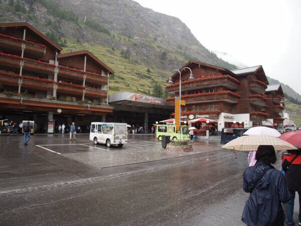 ツエルマットの駅には今日宿泊するホテルの電動のバスがいますので、スーツケースなどの荷物を預けて、町の観光でねずみ返しの小屋に行きます。