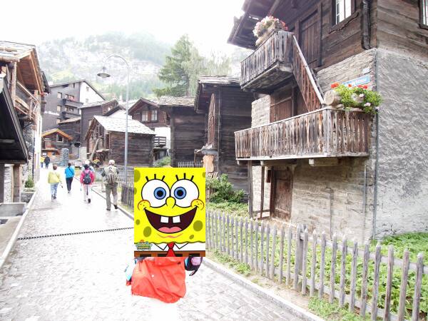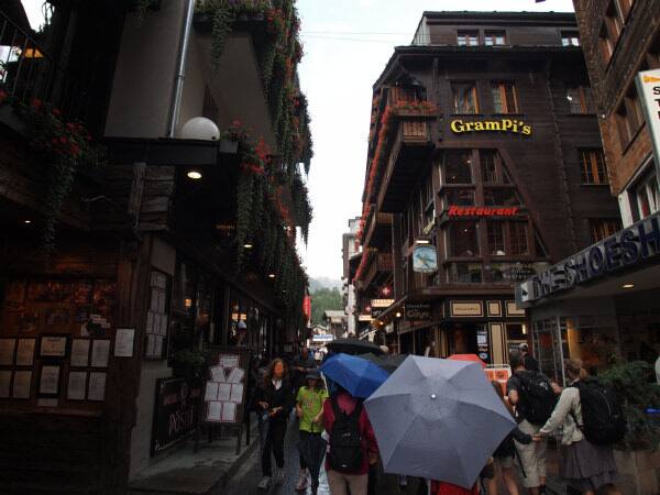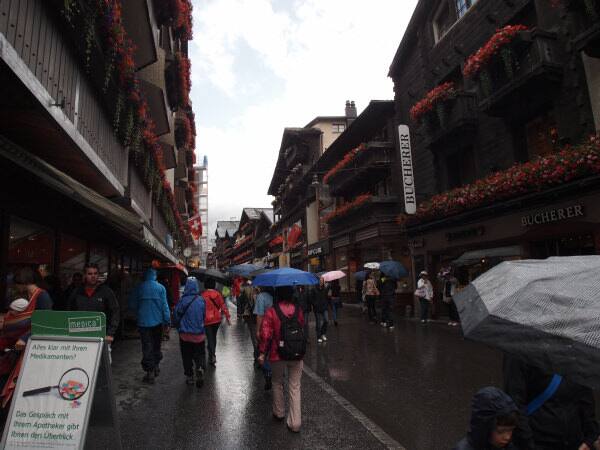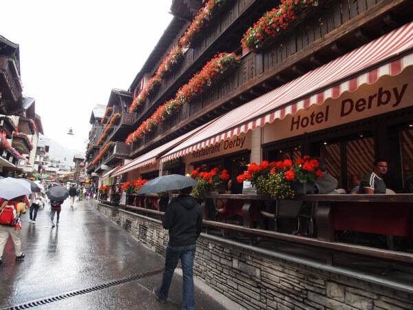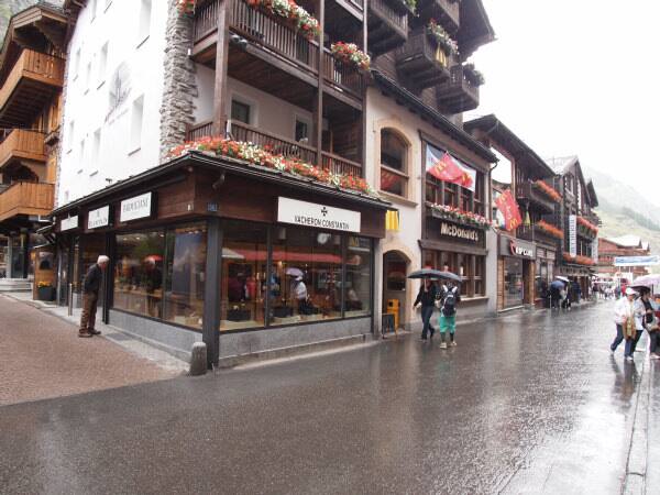 ツエルマットの中心街を通ってねずみ返しの小屋を廻り、ホテルまで徒歩で歩きました。