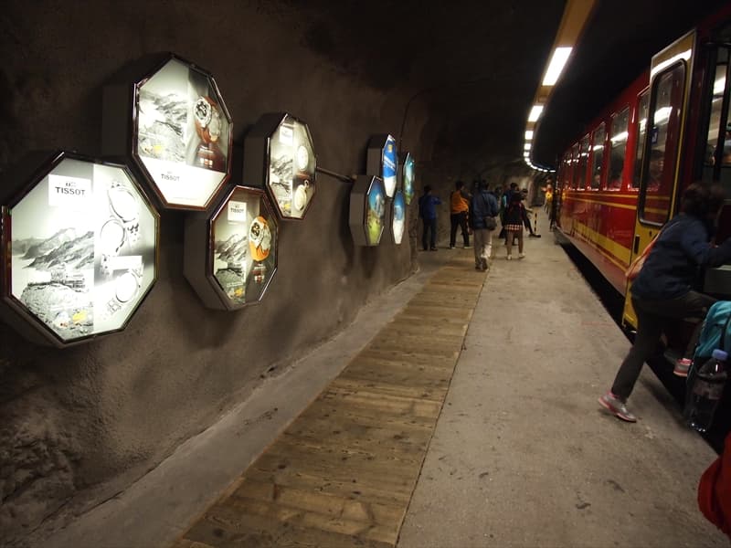 クライネシャイデックからユングフラウヨッホまでの間にはアイガーの岩盤の中の駅に2ヶ所ほど停車し窓からの景色を楽しめますが、高所で酸素も薄くなっているのでゆっくり歩く必要があります。